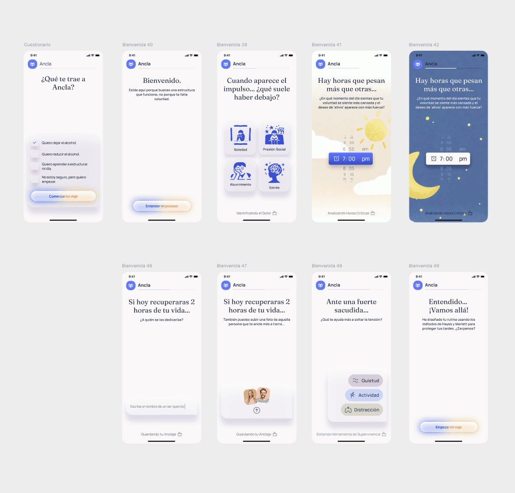 En las pantallas que he diseñado para ANCLA (y que hoy os comparto), cada elemento tiene un propósito: